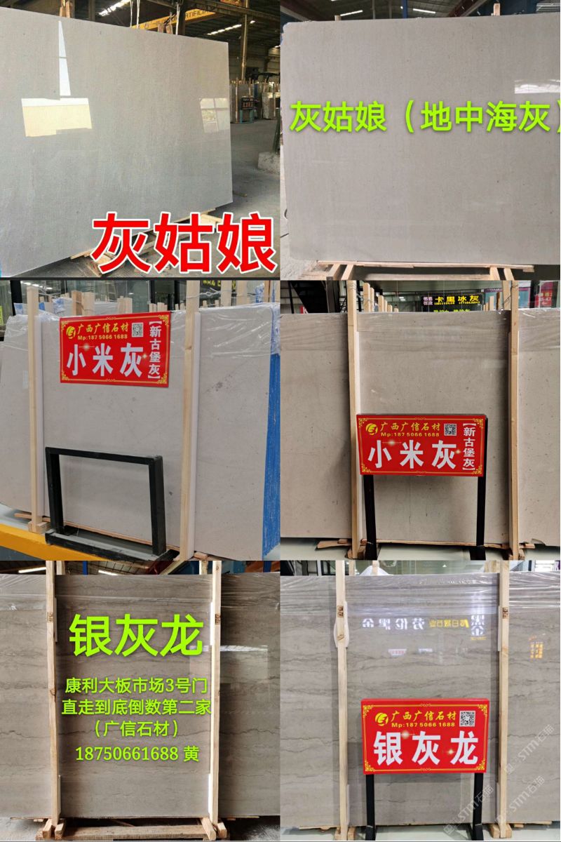 广信石材有限公司是一家集开采生产,加工,销售于一体的民营企业,主要经营天然大理石:灰姑娘,地中?;遥ù蟀澹醢?,规格板),雅士灰,银白龙,小米灰,美尼斯灰,新古堡灰,南极灰等各类天然大理石石材。主要销往以色列,欧美,韩国以及国内工程??笊匠Ъ抑毕?,广西工厂,福建水头,河北香河,江苏南通均有销售点,欢迎您来我们直销店或则广西工厂实地考察参观选购。