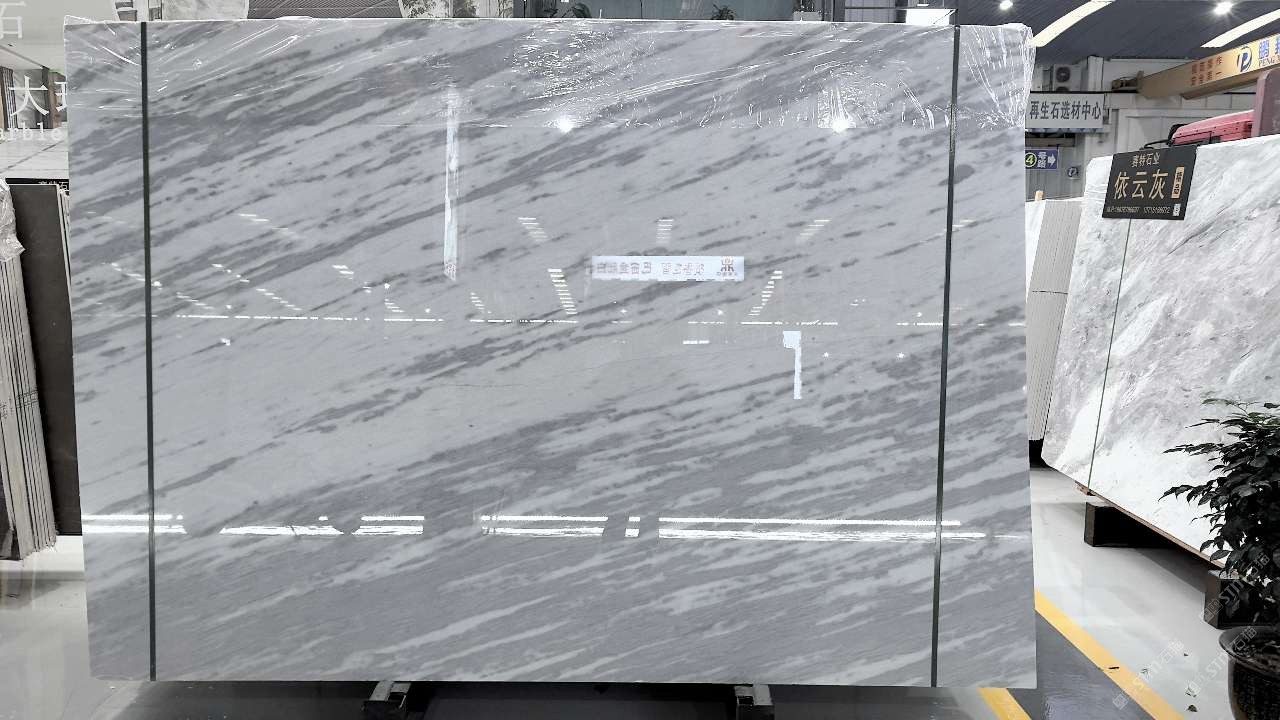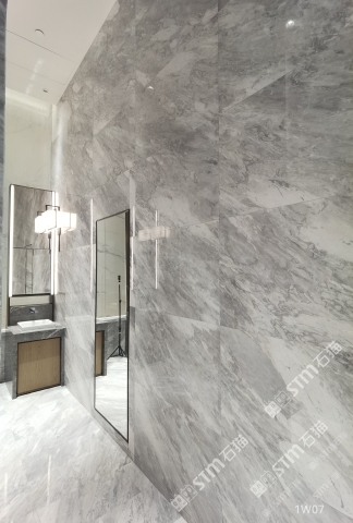 简约的灰,轻盈的白,依云灰大理石的材质油润,高密度,低吸水性,目前已大量运用于室内厅堂,卫浴等墙地面等空间,营造出轻奢雅致的空间氛围。
