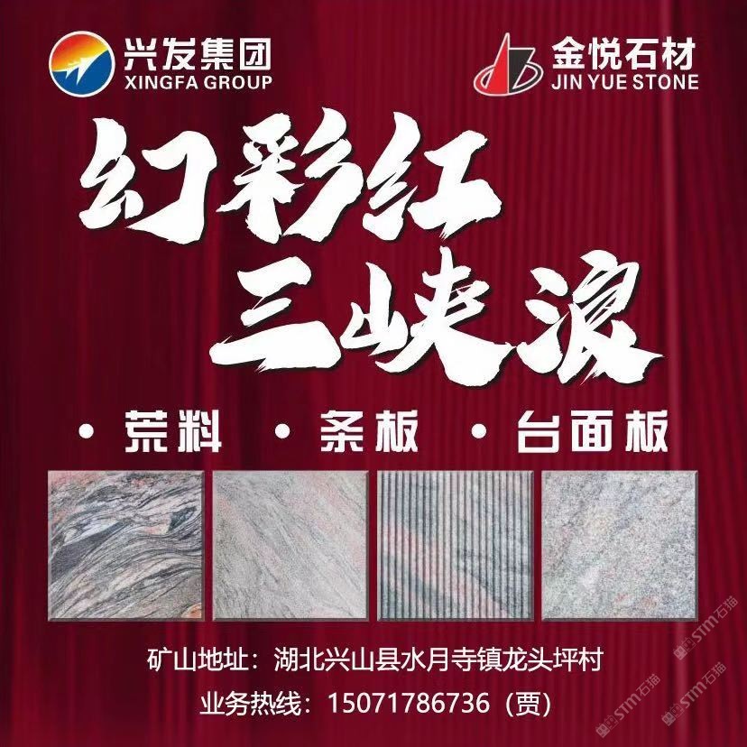 公司生产和销售石材品种主要为三峡浪(幻彩红、幻彩灰)、三峡红、芝麻白(芝麻灰、芝麻黄)和夜蓝星系列,特别是三峡浪和三峡红品种,材质好、花纹奇特,是国内目前的生产地。公司主导建设的工业园距宜昌市兴山县峡口长江码头40公里;距宜昌市货运火车站60公里;距宜昌市长江集装箱码头65公里,热忱欢迎国内外客商前来洽谈合作,并诚招代理商。