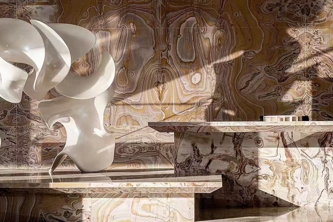 从一开始广为人知的“新景玉石”,到跟进市场潮流,不断更新的奢石、山水画等产品细分,新景长期致力于打造“专业高端石材背景墙供应商”形象。\