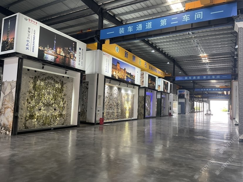 新景印象石画馆常年库存玉石、奢石、山水画,现货大板近15万平方,品种齐全,库存丰富,可满足不同客户群各个价位板面需求。为客户提供了更全面的选择空间。未来,这里更将被打造成为华东地区天然背景石材选材中心。\