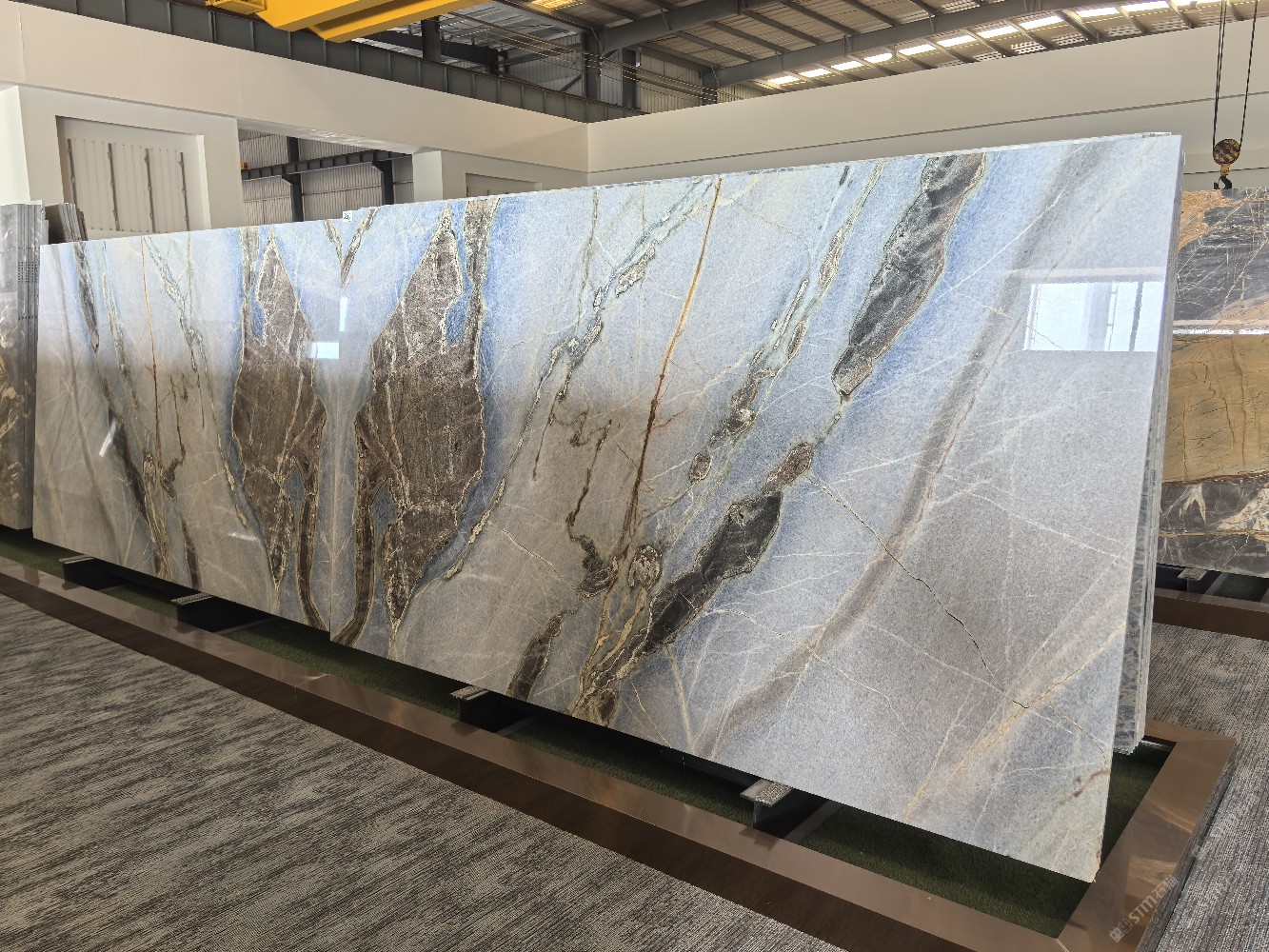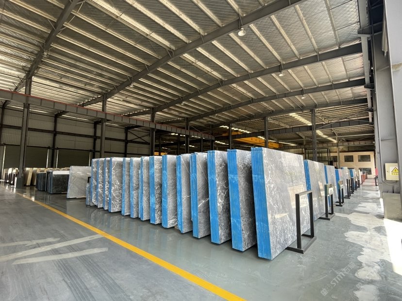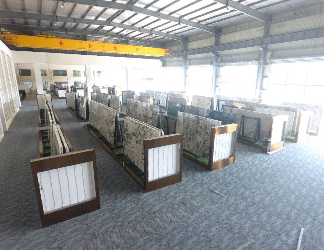 公司厂房现占地30,000平方米,员工150人,引进了先进的加工生产设备,3台现代全自动化超大钻石拉锯,2条全自动大板磨抛生产线,BM单片锯,红外线切割机,全自动五维数控绳锯,磨边机,仿形机和水刀拼花等,形成规?;纳蟀寮凹庸じ骼嘁煨偷淖酆鲜墓ひ漳芰Γ绻娓癜?、薄板、台面板、线条、弧板、罗马杜、壁炉、拼花和马赛克等。