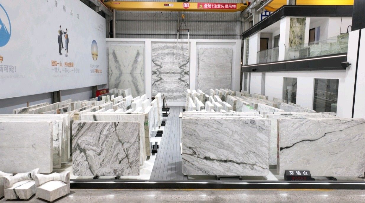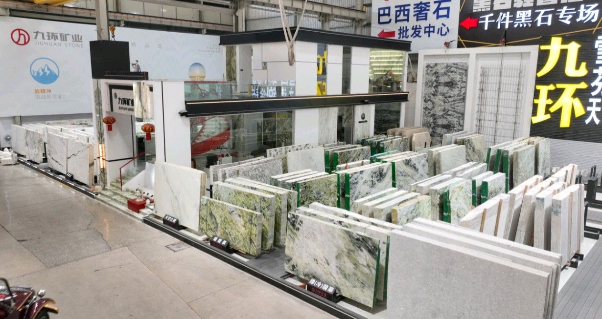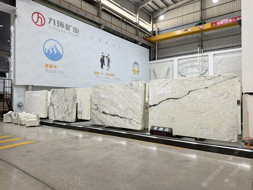 公司创建初期驻点于东升大板市场,随着市场需求,不断进行战略布局,2016年驻点高时大板市场,2017年驻点艺兴大板市场,同时期增加澳磊门店,2018年,九环增加远达专场,拥有数百个架子位,凭借优质服务深受客户认可与信赖。2019年,九环于顺盛增加加工点,主要生产“水晶木纹”,年产量达15万平方米。该年底顺势而上,增加均利厂、新寰宇厂及振南厂三个石材加工厂,并不断拓宽市场品类,由原先单一的“水晶木纹”,又增拓“印度蓝金沙”与“土耳其星月白”两个大理石品种,年产量接近30万平方米,公司经营得到进一步优化。2020年九环石业进军南翼点,新增“卡索灰”及“古堡蓝”两个大理石品种,拥有自己的大型矿山开采权,自主开采销售,产品种类大幅度增加,业务领域进一步拓展。2021年至今,九环石业新增澳盛点,新增品种“卡地亚灰”包矿。至此,九环石业在“世界石都”水头战略版图囊括了澳盛、新寰宇、东升、远达等驻点,具备良好的区位优势,发挥着重要的协同效应。\