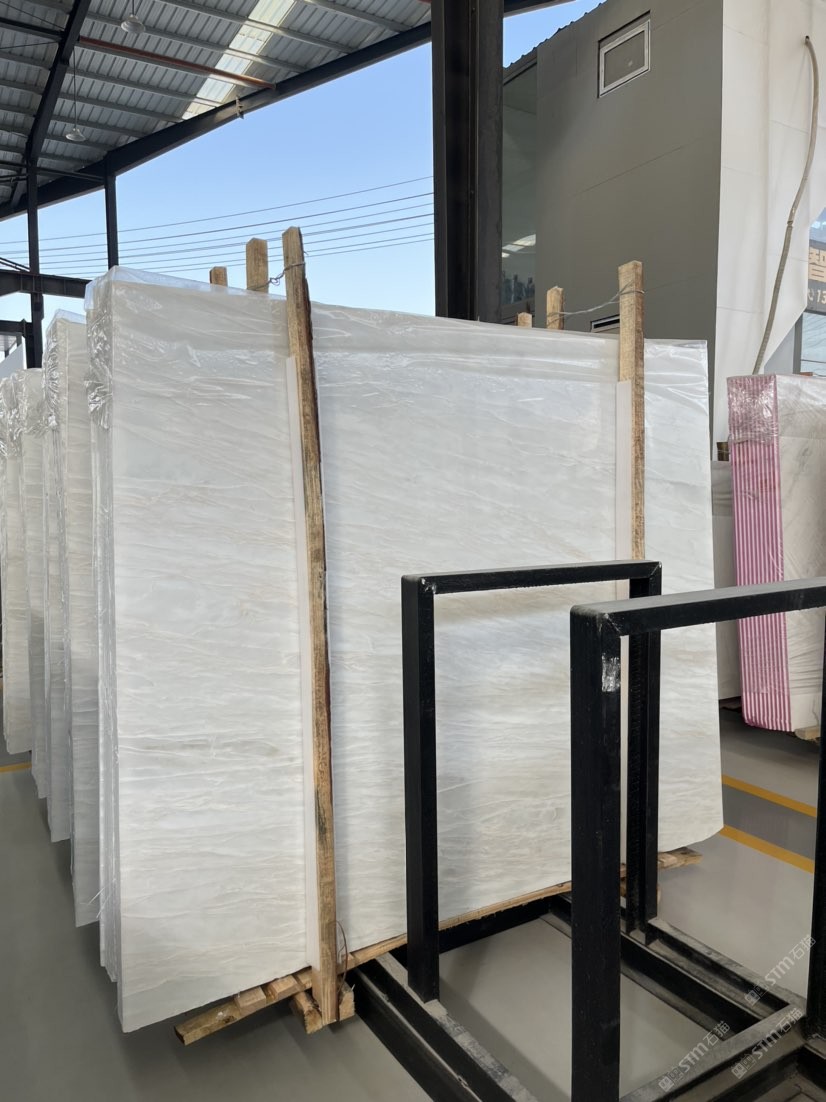 主营:卡里冰玉/米兰白玉/长期荒料库存上万吨/大板现货保持2万方
