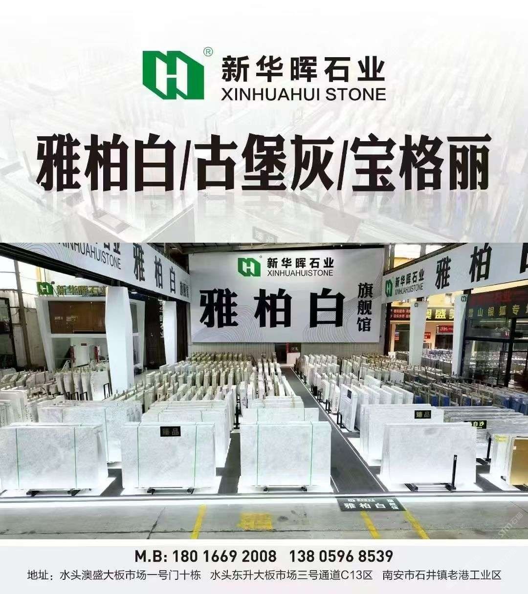 福建南安【卖场地址】水头镇澳盛大板市场2号门直走8栋新华晖白石空间