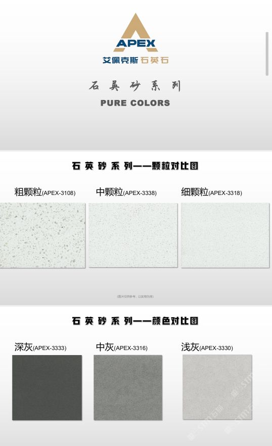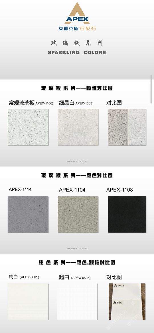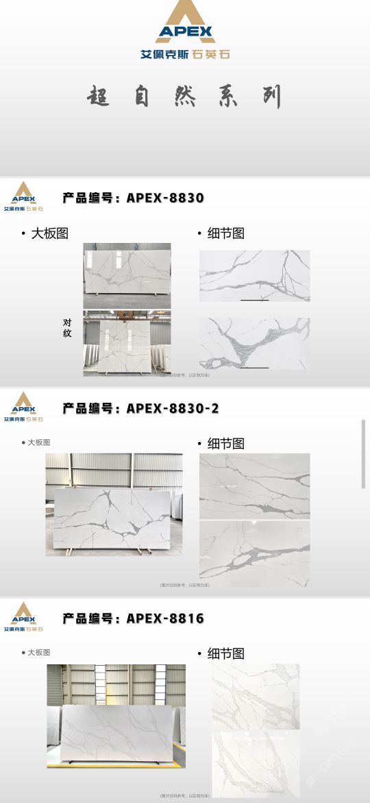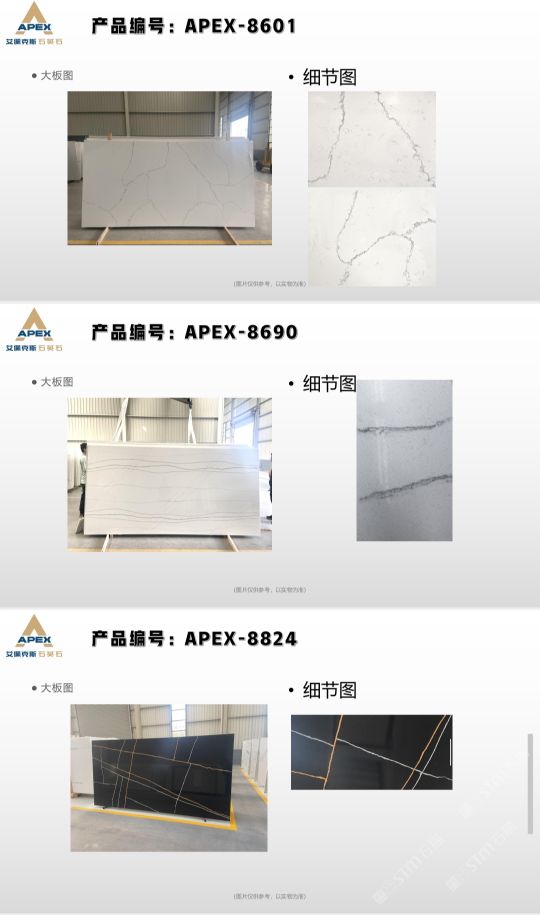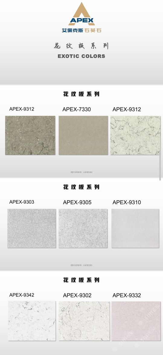 艾佩克斯秉承“精益求精”的开发理念,在人造石生产工艺上大胆突破,研发出更具特色的新石代石英石,色彩自然丰富,具有天然石材的质感和美丽的表面光泽。产品具有刮不花、不污染、用不旧、燃不着、无辐射等五大特点,可以广泛用于公共建筑酒店、餐厅、银行、医院、展览馆、实验室等和家庭装修厨房台面、洗脸台、厨卫墙面、餐桌、茶几、窗台、门套等领域,是一种无放射污染、可重复利用环保、绿色新型建筑室内装饰材料。是的装饰装修材料。