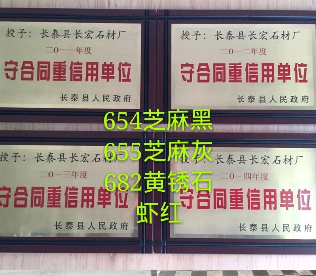 长宏石材厂主要产品有:老矿芝麻黑、655芝麻灰、钟山青、福鼎黑、617惠安红、黄锈石、小蓝宝、G636溪东红、白麻等。 \