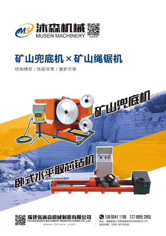 主营石材机械,金刚石绳锯,金刚石绳锯机,花岗岩切底机,水平钻等矿山机械。