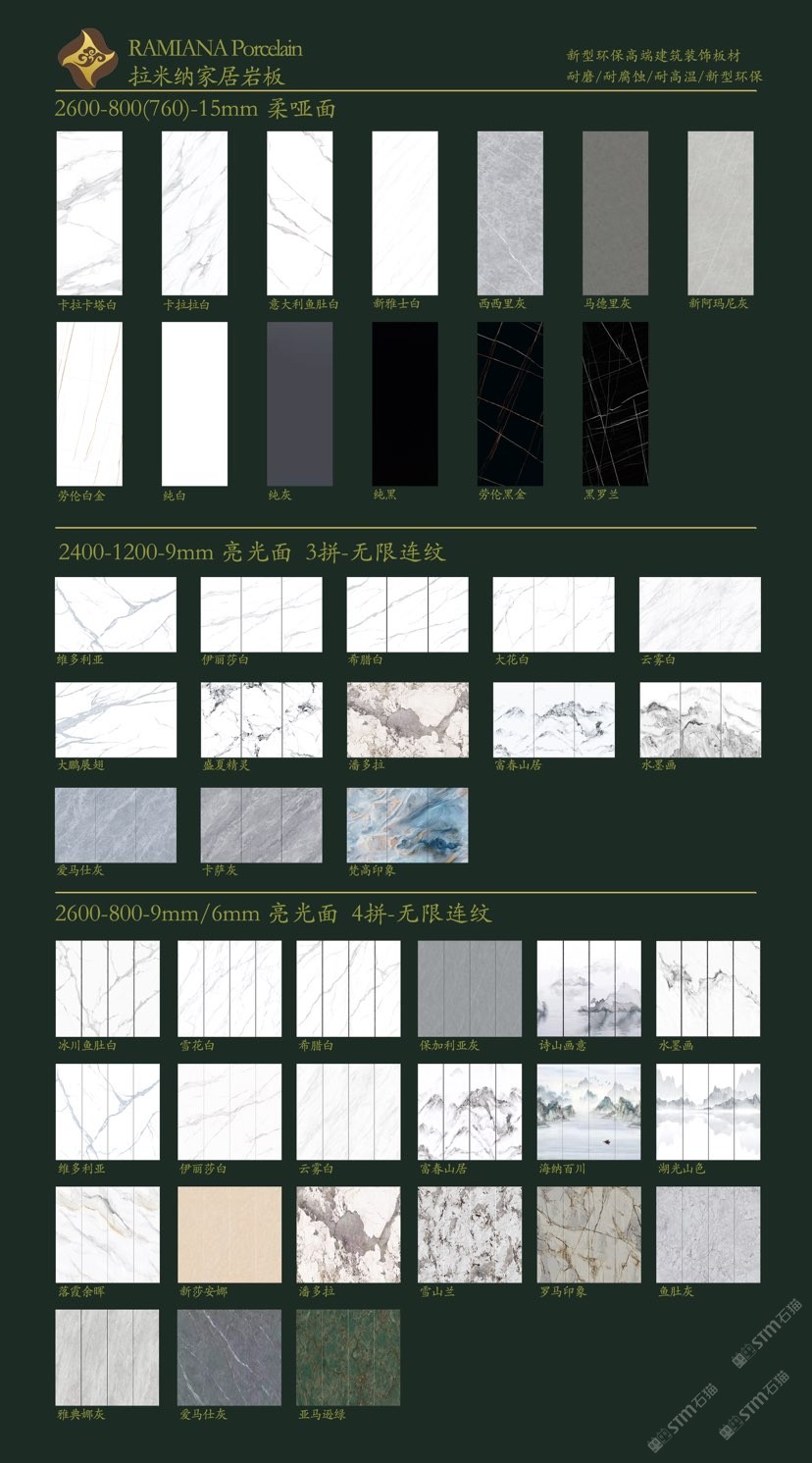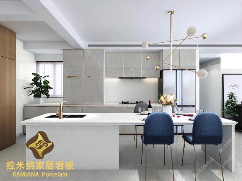 拉米纳家居岩板(RAMIANA Porcelain),硬度堪比石英石,亮度高,抗污、耐热、防刮、耐用、易清洁。