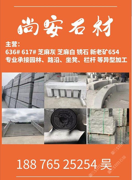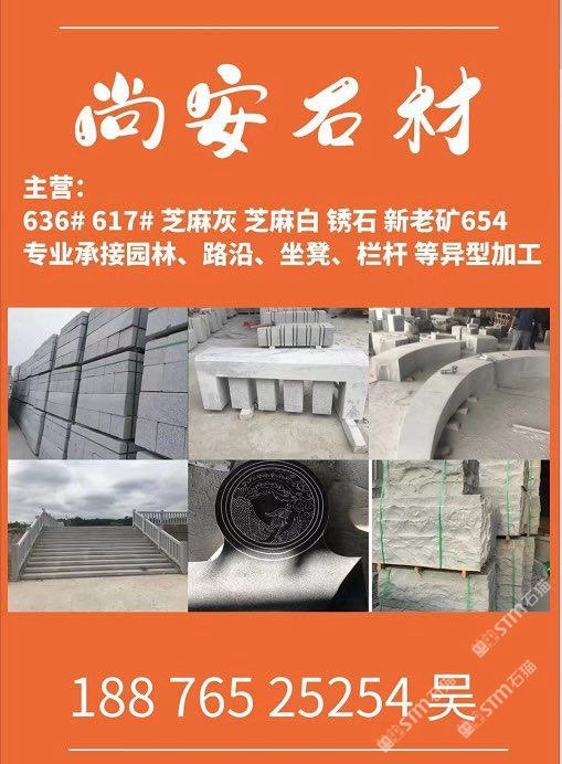 主营;新老矿芝麻黑 芝麻灰 芝麻白 锈石 636 617 专业承接 园林地铺、路沿石、坐凳.栏杆 自然面、菠萝面、蘑菇石、外墙干挂等异形 厚板加工