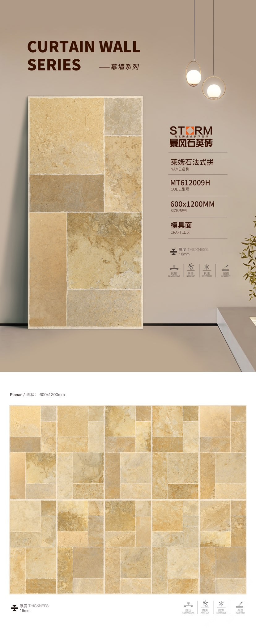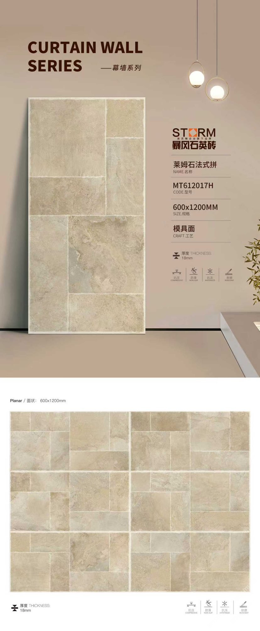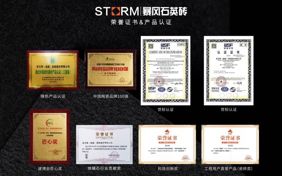 暴风石英砖是美艺陶(福建)高新建材有限公司旗下系列产品,专注研发和生产运用于户外的石英砖产品,为商业建筑和高端住宅提供优质建材产品与应用解决方案 。暴风石英砖精准定位为户外用砖主营厚砖系列产品(1.2-3CM),并与2021荣获“全国工程建设品牌”。\