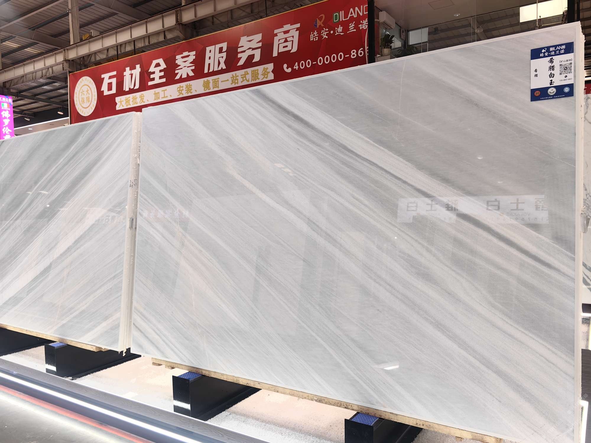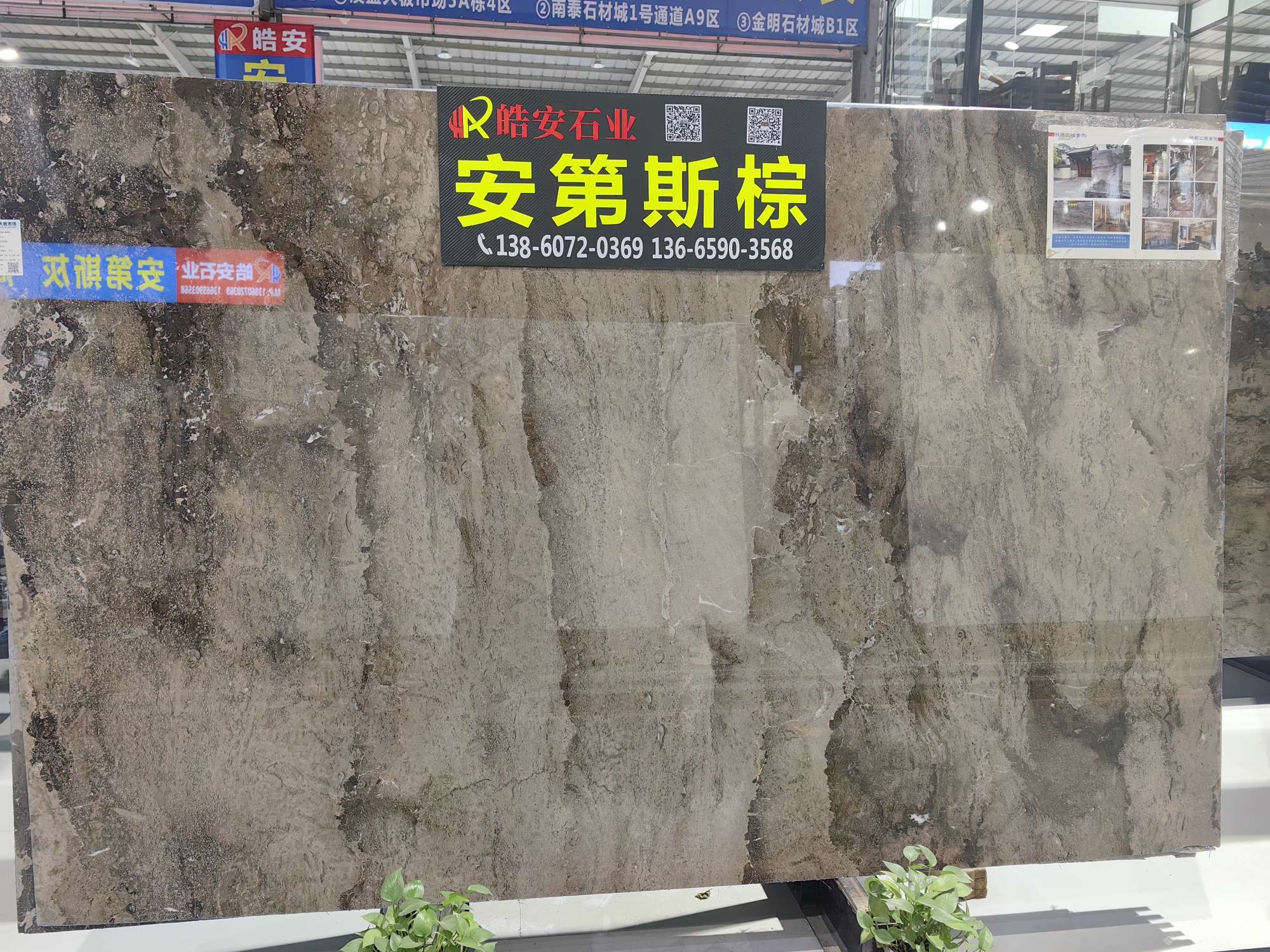 中国福建泉州水头镇澳盛大板市5A栋4区皓安-迪兰诺轻奢石材全案服务商选材中心。