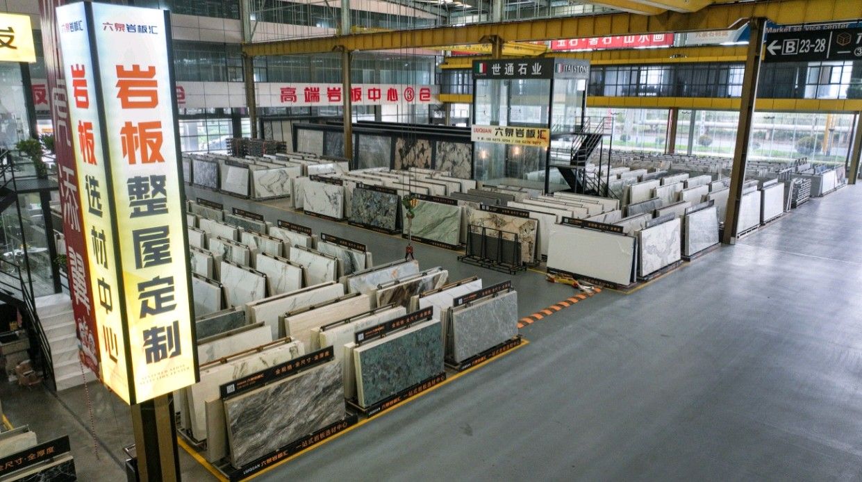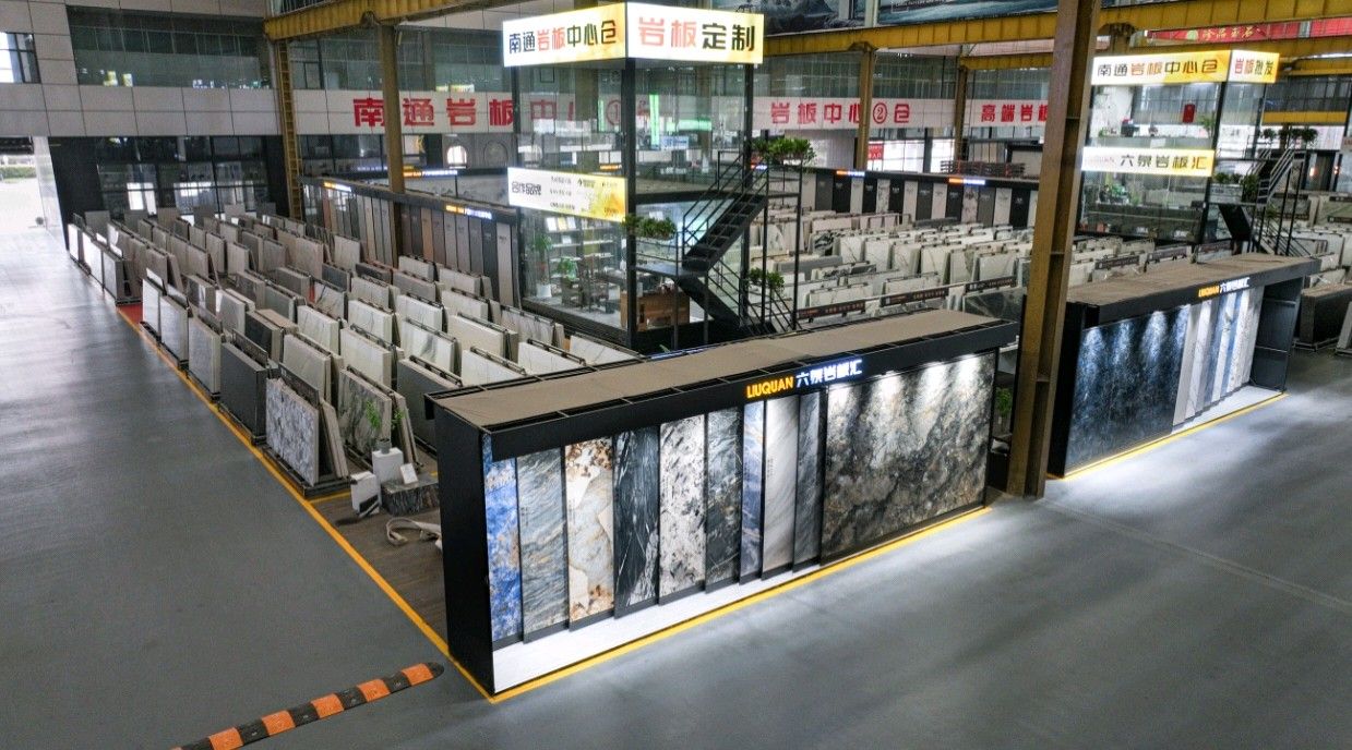 中国江苏南通六泉石材城3号通道六泉岩板中心仓