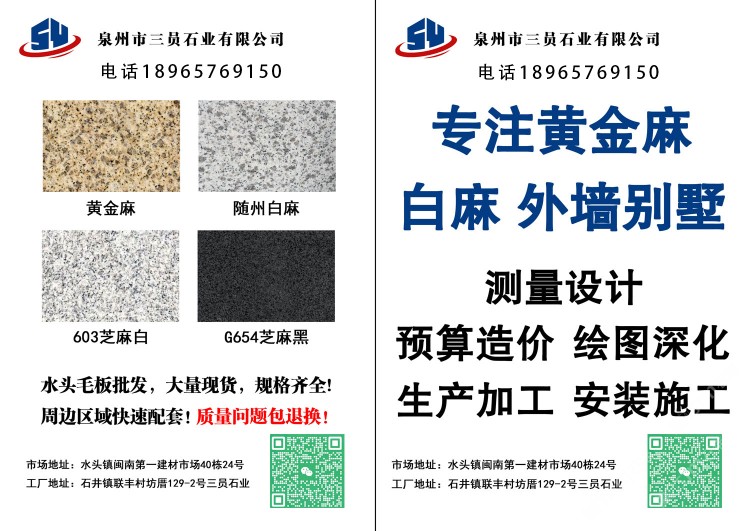 随州白麻,黄金麻,603芝麻白,G654芝麻黑,矿厂一体,水头常备现货3万平米以上,方便周边区域快速配套。