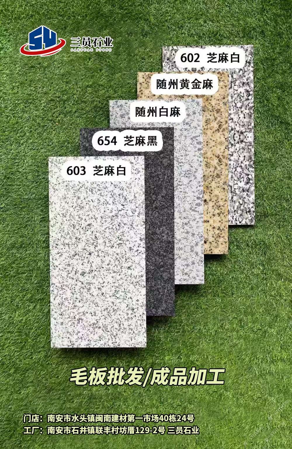 长泰654芝麻黑毛板批发,成品加工,随州白麻,黄金麻,毛板大批发商,门店位于水头闽南建材市场40栋24号,加工厂位于延平大道联丰村129-2号,配有专业Cad技术员,跟单员,欢迎新老顾客光临。18965769150