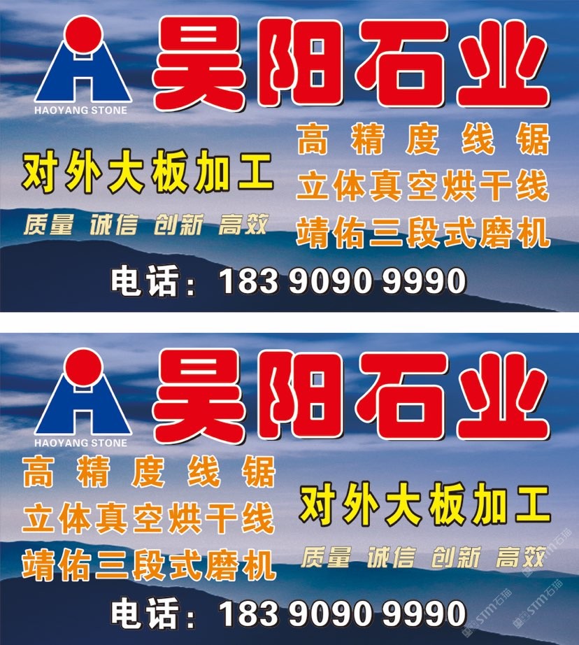 福建昊阳石业有限公司成立于2010年9月,公司总部位于誉满全球的“中国石材城”南安市,占地20余亩,拥有三台高精度线锯和三台大理石拉锯,一台立体真空烘干线以及靖佑三段式磨机,能够满足各种尺寸和大小的切割需求,专业的刷胶团队,确保每一块大理石都经过精心处理,保证其质量和美观度。先进的磨光技术,让每一块大理石表面光滑如镜,展现出的光泽。