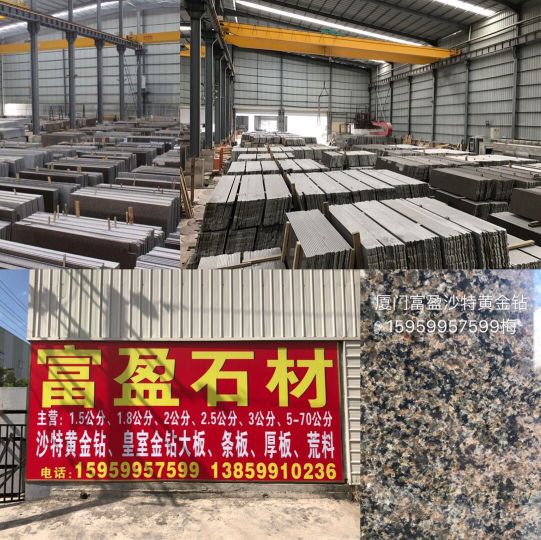 经营沙特黄金钻、皇室金钻各种厚度大板、条板、厚板、荒料及沙特各种花岗岩,长期库存10万㎡,中国市场库存量,规格齐全的沙特花岗岩供应商