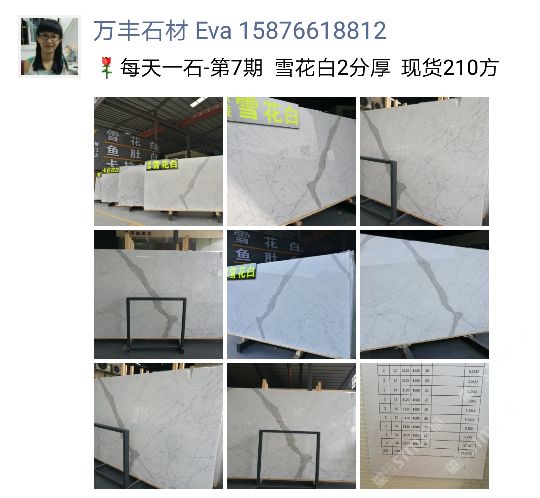 公司主营雪花白、大花白、卡拉拉白、中花白、鱼肚白、鱼肚金等一系列以白色经典,简约轻奢为理念的意大利进口白色大理石。凭着已成立十多年的悠久历史,现公司拥有优秀的销售、设计、生产、售后团队,以及多年来与客户保持良好的紧密合作关系,产品已远销泰国、加拿大、美国、中东等国内外市场,产品质量与服务也获得一致好评。\