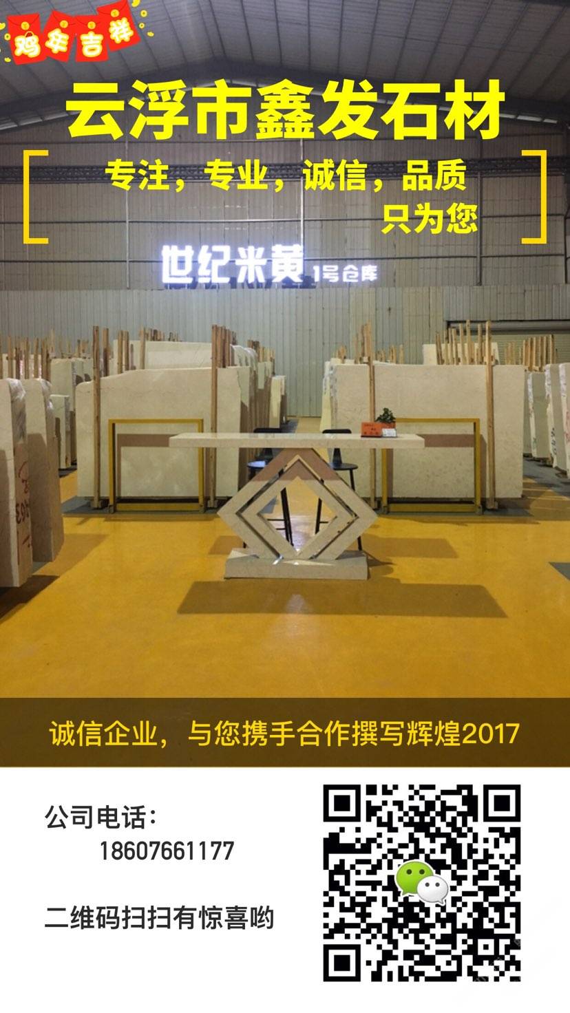 云浮市鑫发石材,是云浮地区一家世纪米黄专场。旗下有華盛達石材,鑫发石材工厂,石在经营,实在服务。以诚信为本,品质服务为中心,竭诚为您的满意不懈追求。