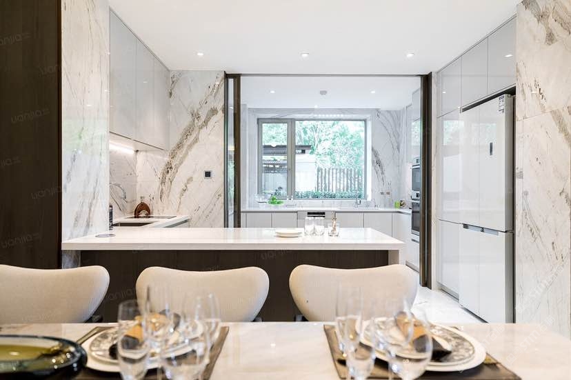 发布信息: 位于郑州端地区的北龙湖金茂府,用天然的爵士白大理石使整个空间营造出轻奢,现代的感觉,天然的石材,往往只需要简单的运用,轻奢风跃然纸上