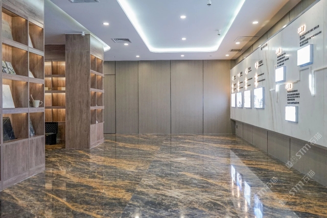 发布信息: 无锡斯通斯展厅 “琥珀灰其深沉的底色非常的沉稳适合商务氛围,其上跳脱的金线又赋予了更多的细节变化,使空间空间不至于过于沉闷单调。琥珀灰与各种材质的兼容性都很高,当和温和典雅的木质家具相结合时,可以轻松营造出轻奢、雅致感。”