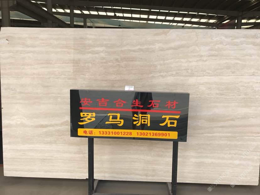 墙面意大利罗马洞石直纹、地面反切面意大利罗马洞石