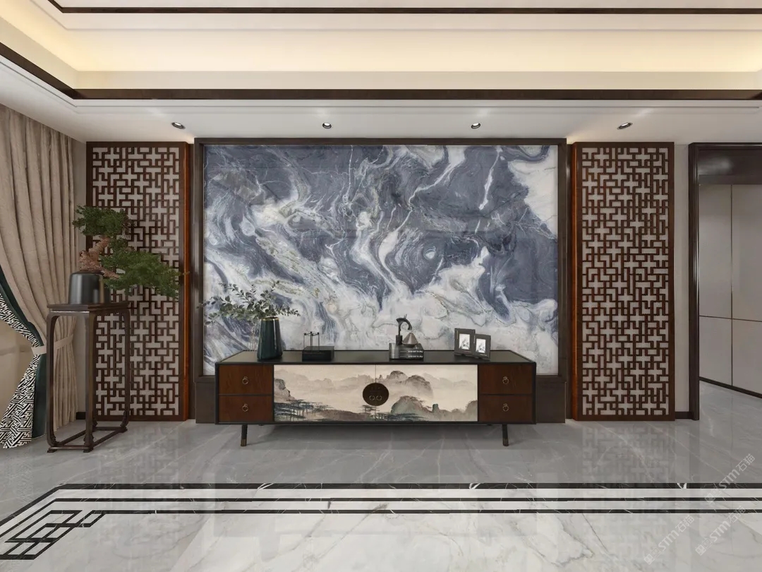 发布信息: 客厅背景墙采用的雲玖 渲染出浓郁的东方水墨意象 将山水之景融于其中 勾勒出缥缈起伏之景 仿佛窥见雨过天青后 这一座深宅殷切却澄澈的期盼 盼君归来