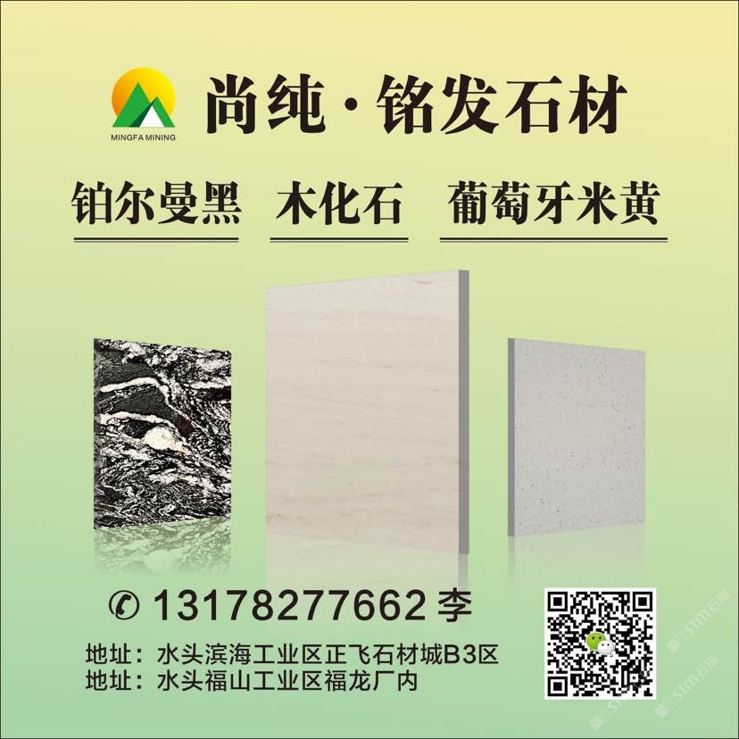 发布信息: ??铭发石材?? 木化石.葡萄牙米黄.铂尔曼黑 各种厚度量大专场 ┊工程 ??:13178277662李