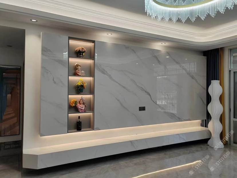 我们新一派厂家可以热弯 做背景墙 做楼梯 做台面 全屋通铺