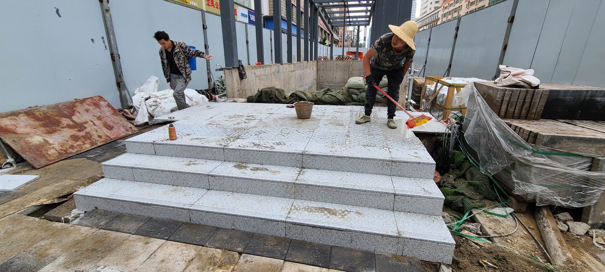 发布信息: 昆明地铁1号线西北延线室外出入口,地面石材采用白麻火烧面铺设,墙面石材灰麻光面铺设