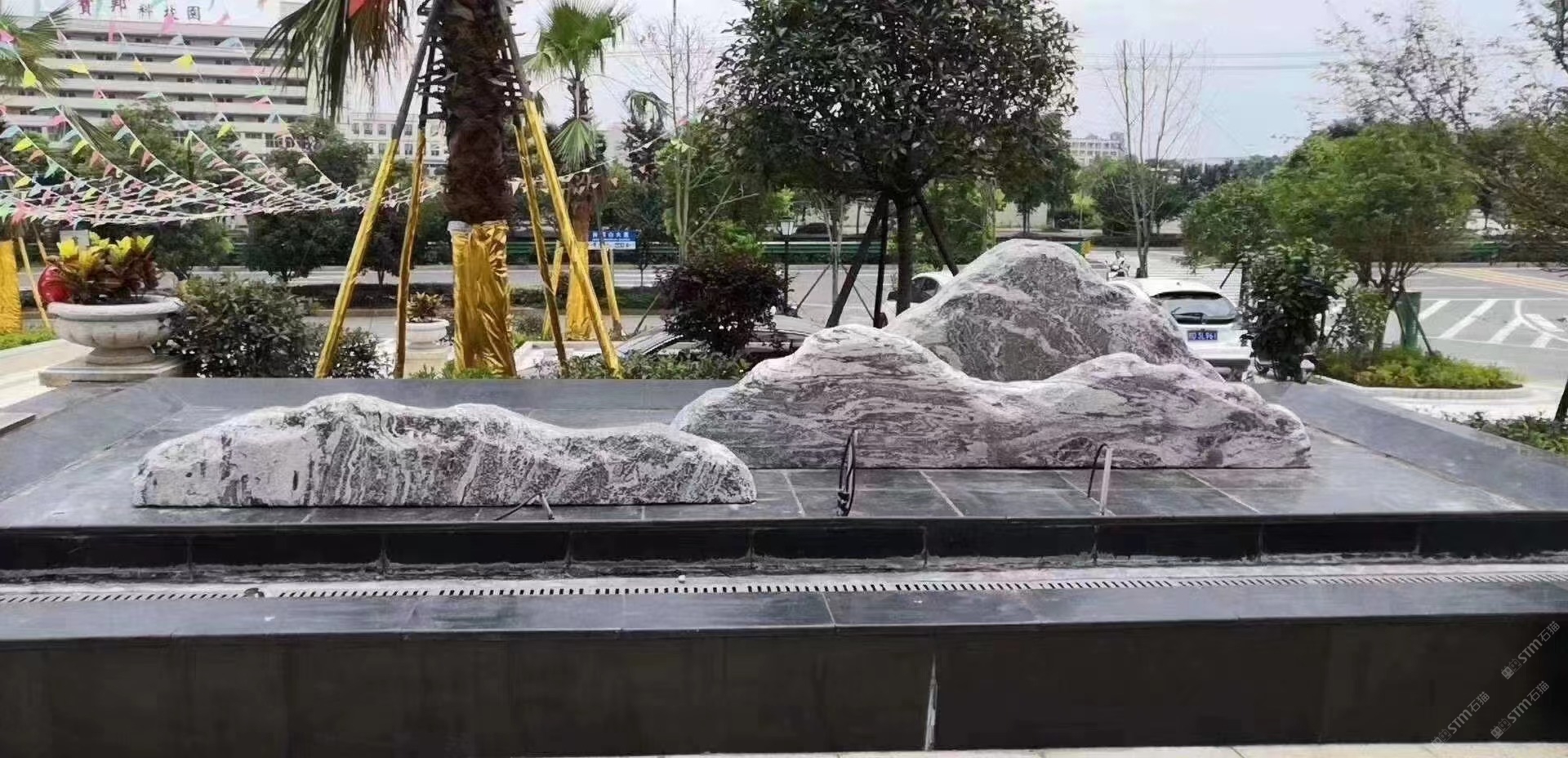 黑石水景水池踏步地铺 造型水景