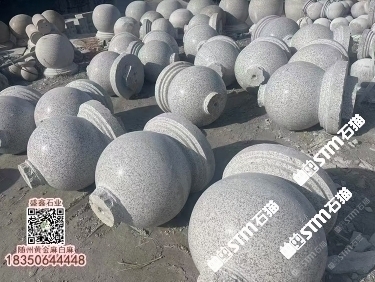湖北白麻石材挡车石球随州白麻火烧面荔枝面光面黄金麻
