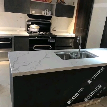 鱼肚白.人造石英石厨房台面工程案例.易扬石业