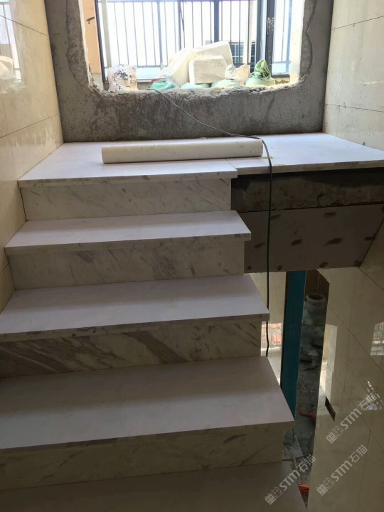 发布信息: 老矿爵士白干挂做成的墙面以及楼梯。白色显现出的奢华高档是其他色系石材做不出的。