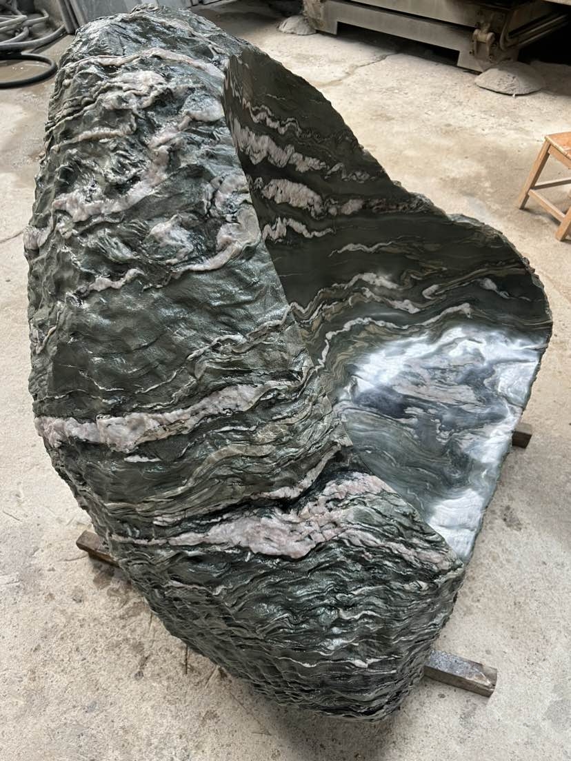 发布信息: 九龙玉整石座凳,绿底云纹如山水画卷,随形挖凿的坐面,糙石肌理配柔滑触感,往院里一放,坐下来就是“把山水揣进日?!眫