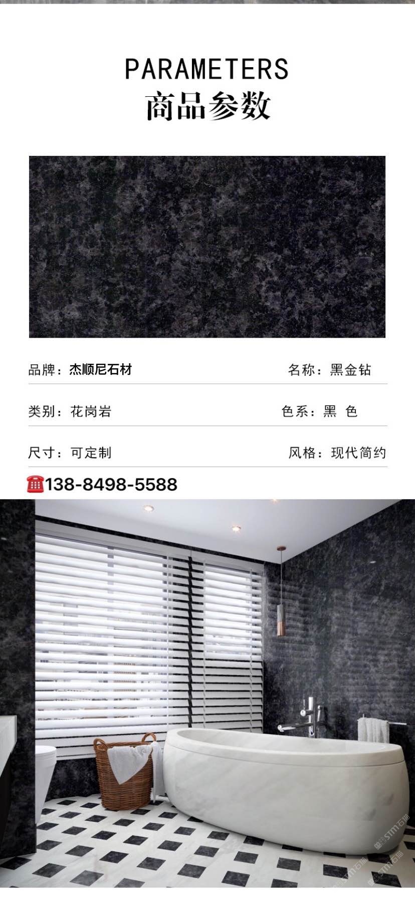 发布信息: 黑金钻花岗岩,现代装修设计极速简约:墙面、地面、楼梯阶层面、台面,柱子、是你的选择。