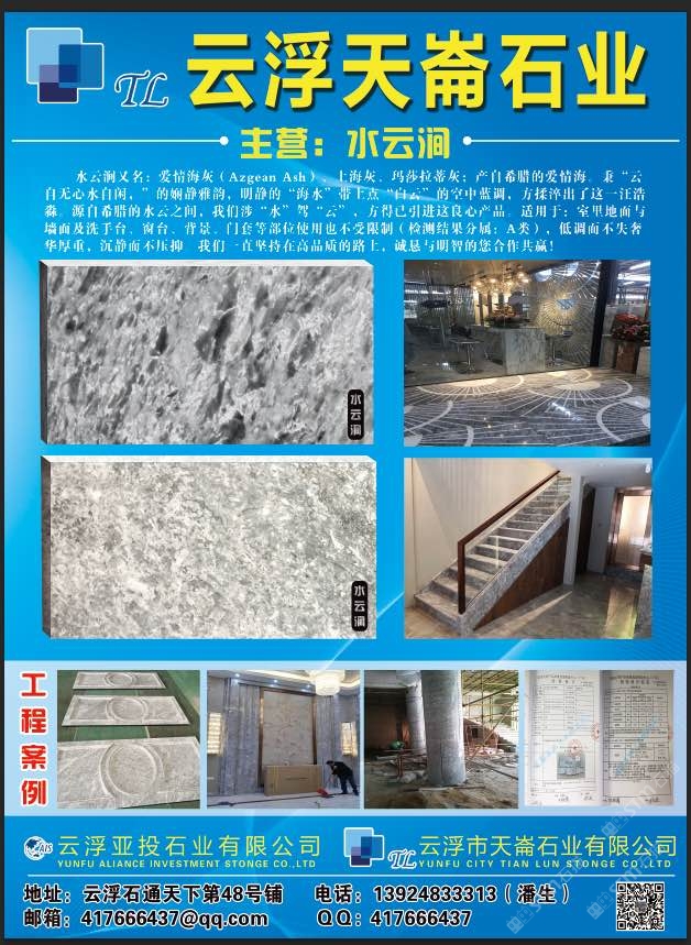 发布信息: 天崙石业:“水云涧”?因为专注,所以注重;因为注重,所以精致。 经营原则:诚实守信!合作共赢!???? 天天上新品??;质量做保证; 地址:广东云浮市云城区石通天下边直入48号铺; 致富热线:潘13924833313。 [机智][勾引][勾引][勾引][耶][握手]