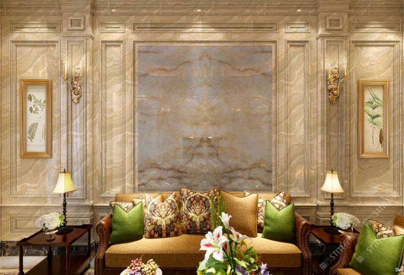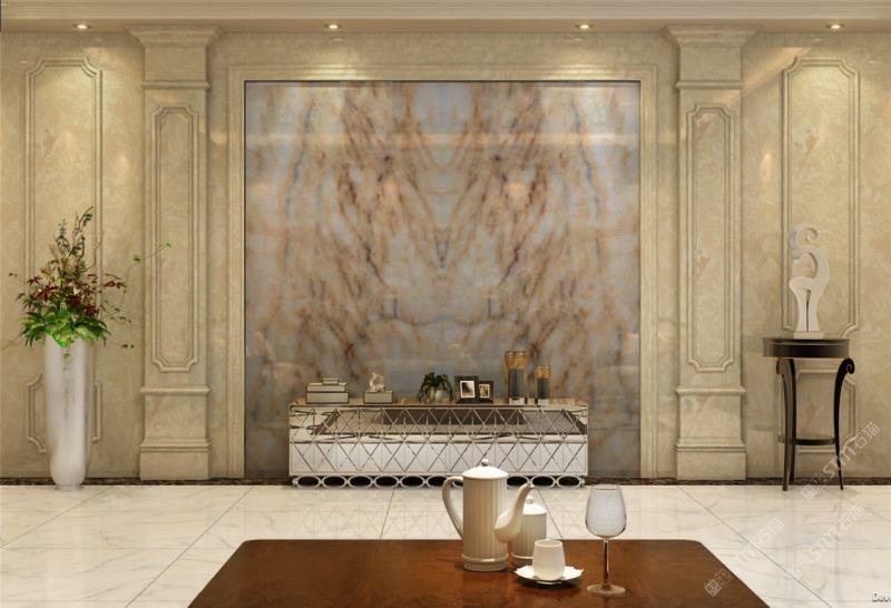 黄花冰玉做背景墙效果杠杠的