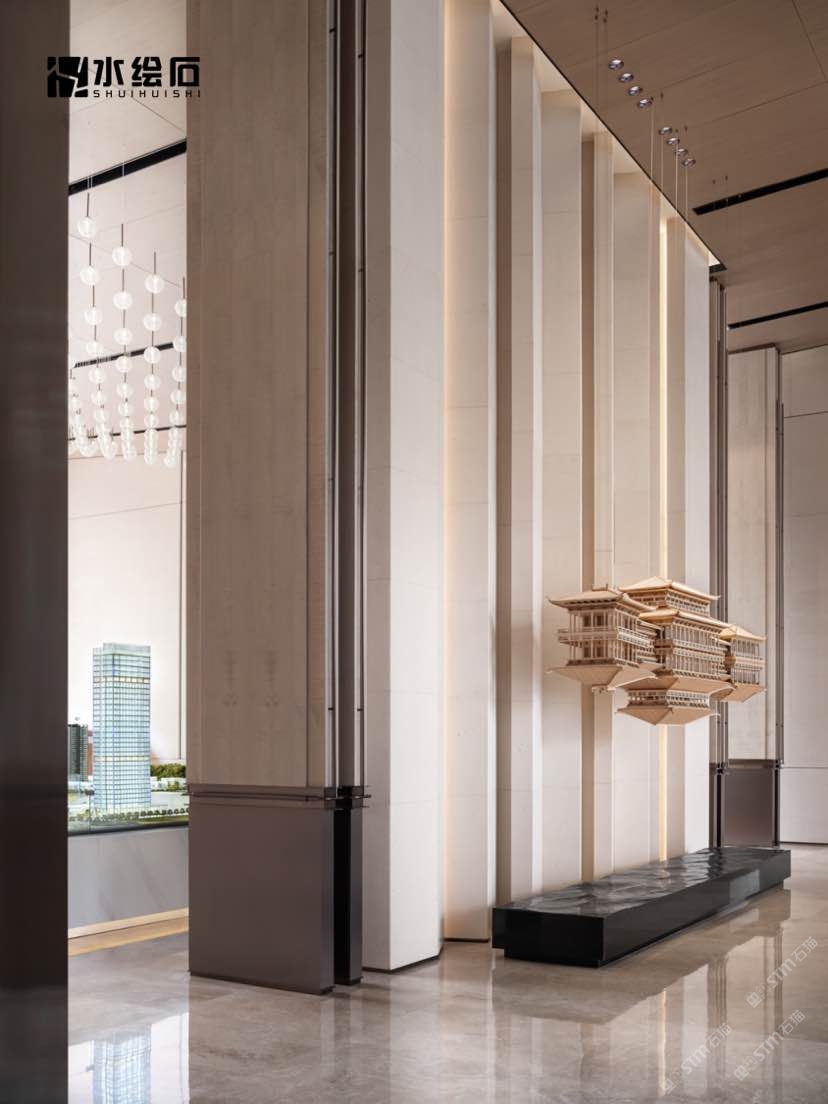 发布信息: 水绘石作为中集智谷会客厅的重要组成部分,此项目选用水绘石|CLY03作为内墙大面装饰,米白色无机生态洞石与卡其配色相结合,中性风色彩的搭配,追求自由内敛,精致的气质,彰显出空间的艺术气息。