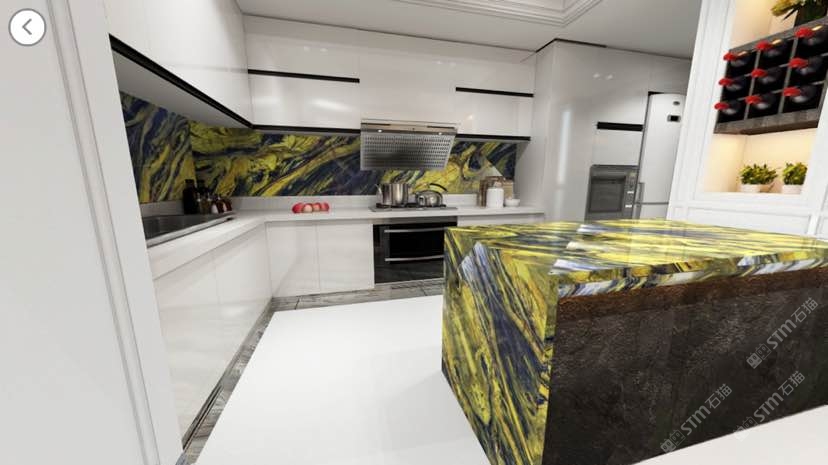 新景泰蓝透光板厨房案例/半宝石/奢石/蓝纹石透光板