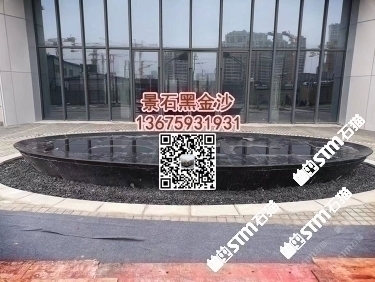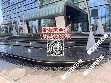 印度黑金沙石材园林水池水景工程造景石材户外水景工程