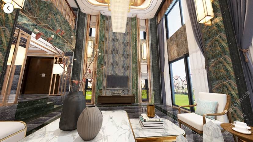发布信息: 本别墅用的大理石种品来自本厂经营的雨林绿,雨林棕,意大利雪花白,鱼肚金,卡塔蓝,紫彩绿,意大利蓝丝锻等天然大理石