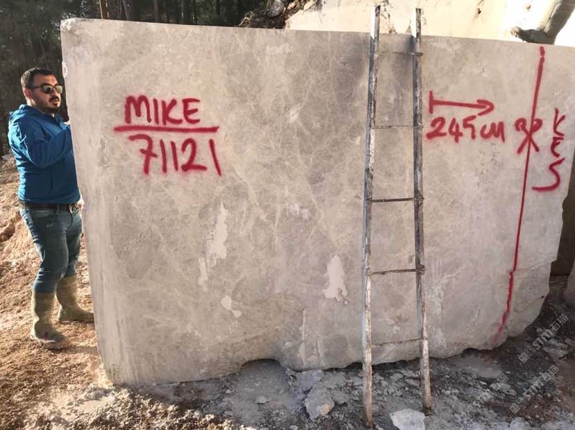 成品大板及荒料,料大均匀,底色灰白,花纹细腻材质优。