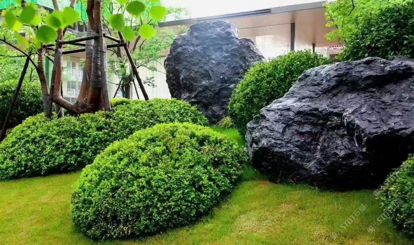 广场黑山石造景,典雅,永不过时