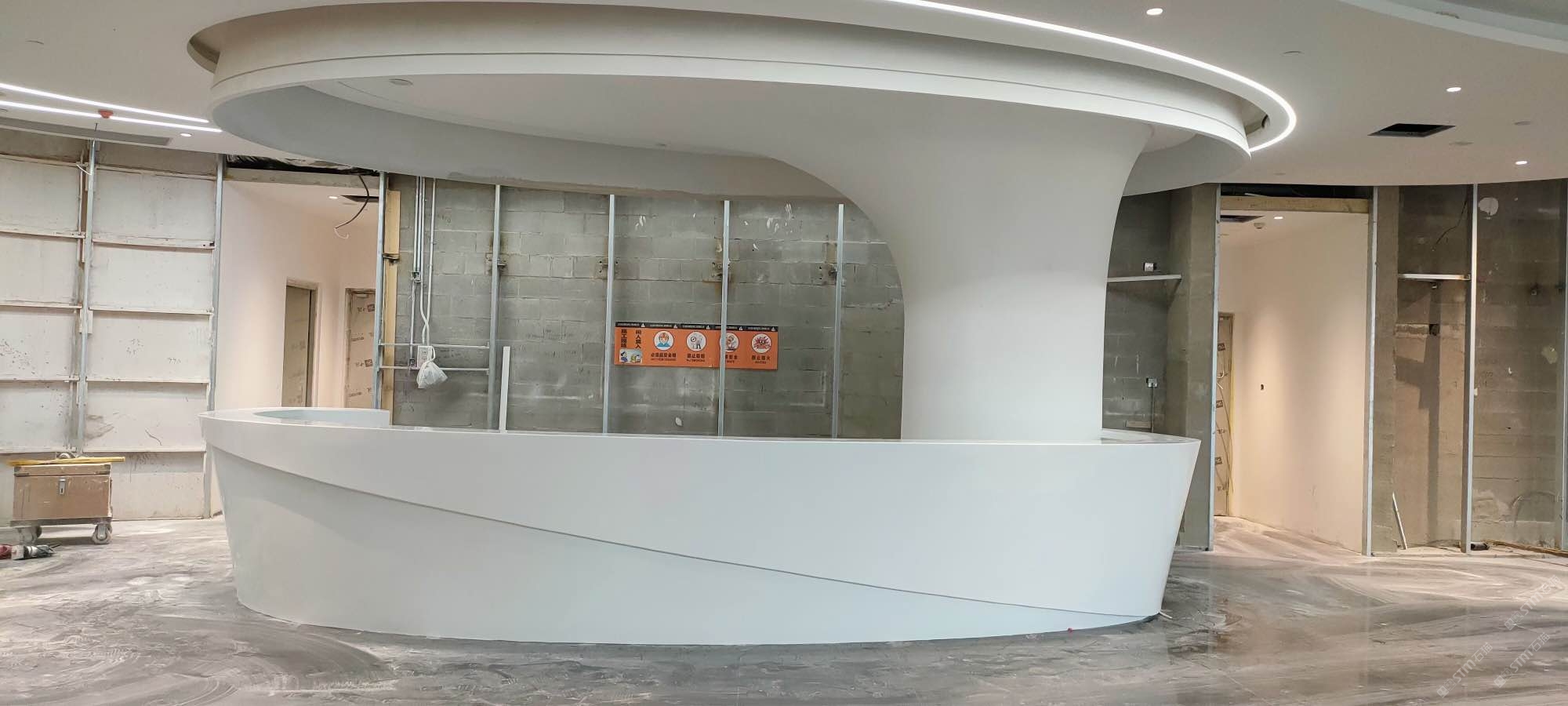 亚克力人造石圆弧服务台和背景墙