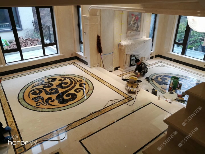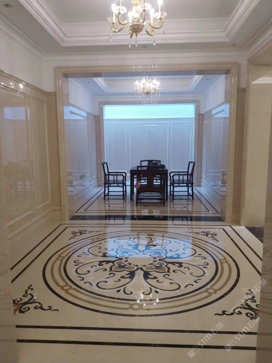 莎安娜做主打色水刀拼花,米黄板衬托出简单大气