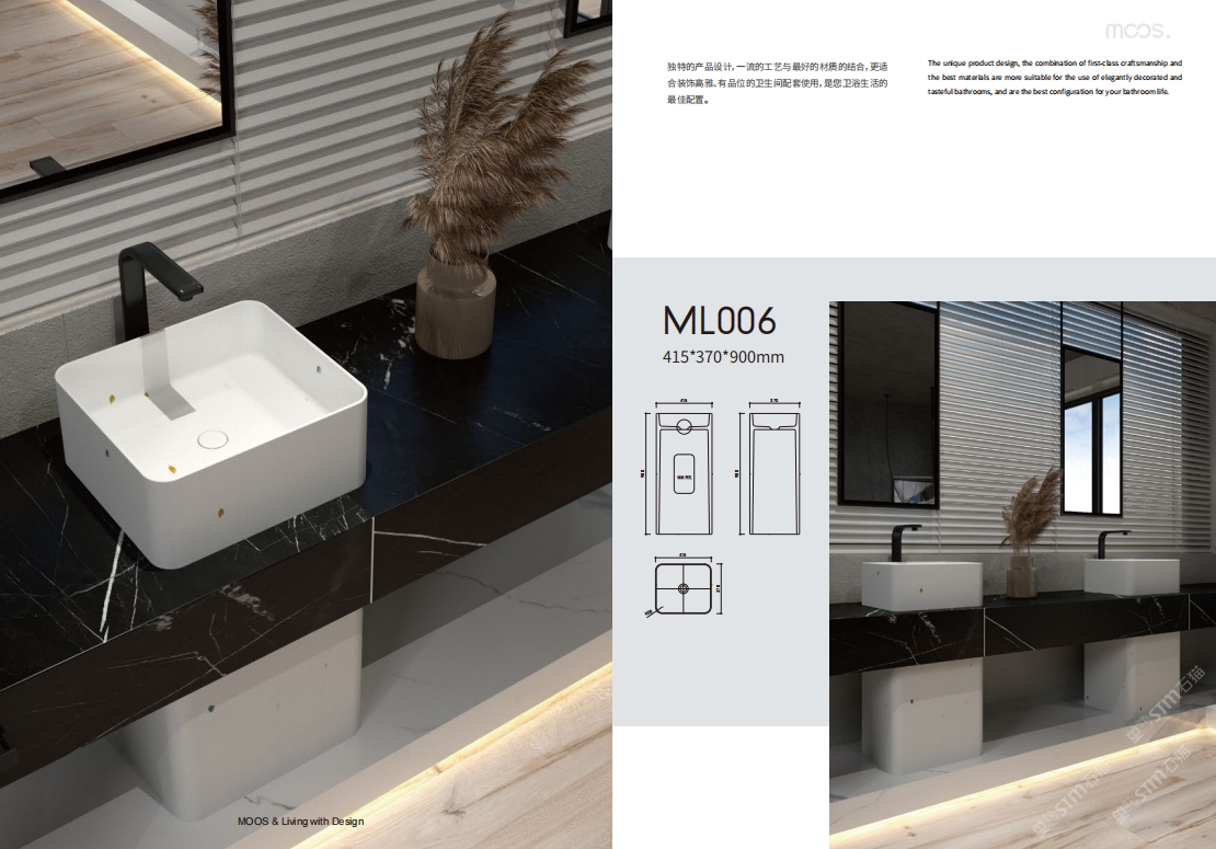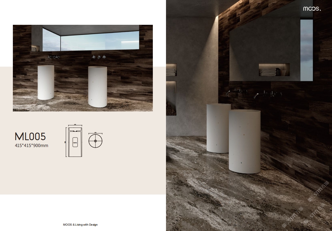「MOOS魔石卫浴」无机水磨石一体化台盆设计