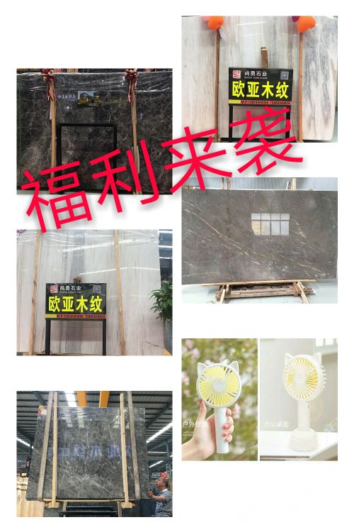 发布信息: 重磅消息来袭!?????? 重磅消息来袭!?????? 重磅消息来袭!?????? ??????尚勇石业:夏季送清凉优惠活动开始啦! 全场欧亚木纹99元起!99元起!99元起!告诉你这还不够,没有,只有更低,另买???300m2大板还送100m2【限前十名】,送完即止! 活动时间:5月25日至5月31日止; 活动地址:中闽市场555区 抢货热线: 15860949828 杨 18120623919 黄 即日起转发本活动到朋友圈集赞88个(仅限石材和石材相关的行业人士)即可赠送迷你小型可充电风扇一台,礼品数量100名,先得送完为止!本活动终解释权归尚勇石业所有!