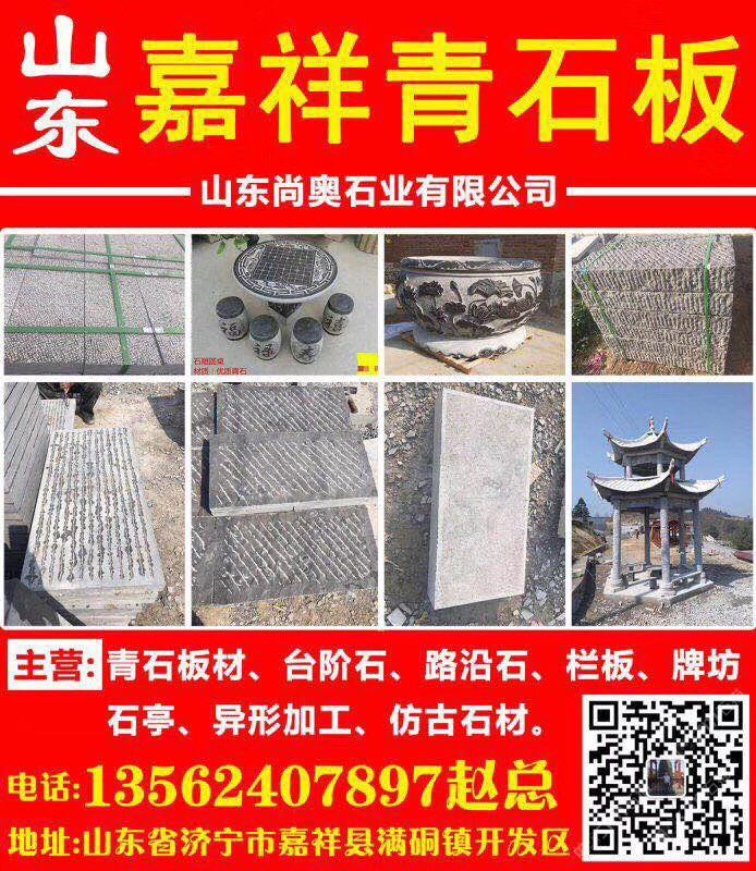 发布信息: 本厂主营山东青石,各种青石板材,路沿石,台阶石,蘑菇石,栏杆板,牌坊,抱鼓石,电话13562407897