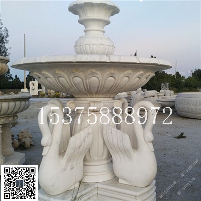 石雕流水喷泉 石雕天鹅喷泉 汉白玉喷泉 大理石花钵